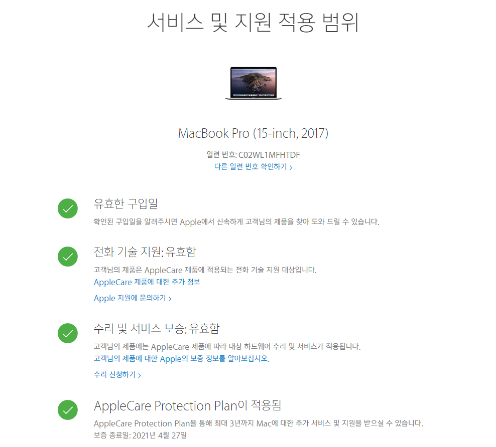 그리고 AppleCare로 2021년 4월까지 보증됩니다.