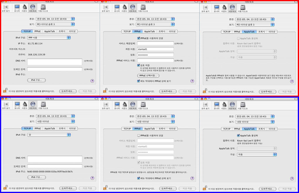 그림과 같이 내장이더넷에대한 TCP/IP는 비활성시키고 네트웍만 활성시켰습니다.