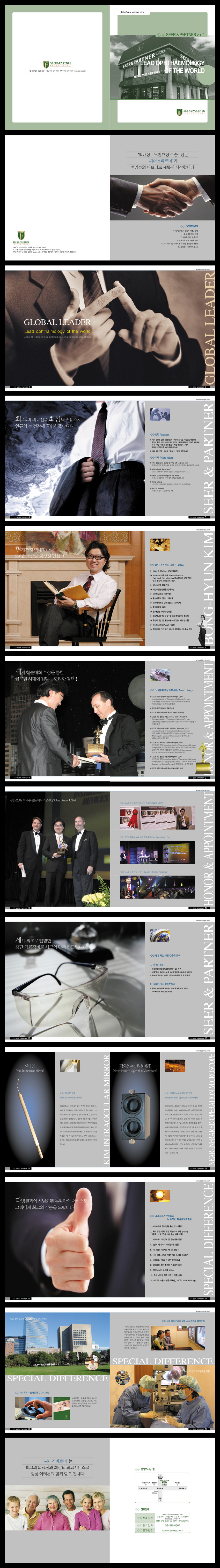 이번에 압구정에 씨어앤파트너 안과 개원때 신문광고와 리플렛 등 함께 제작한 브로슈어인데 총 2권으로 제작해서 케이스에 넣도록 제작한 건데 한번 봐주시고 평가해 주세요. 급하게 진행해서 좀 그렇지만 잘봐주세요...